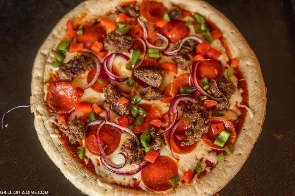 - Pre-made 12″ Pizza Crust – You may even like this Blackstone Homemade Pizza Dough Recipe. You can also make Homemade Naan Bread or Grilled Homemade Pizza Crust.