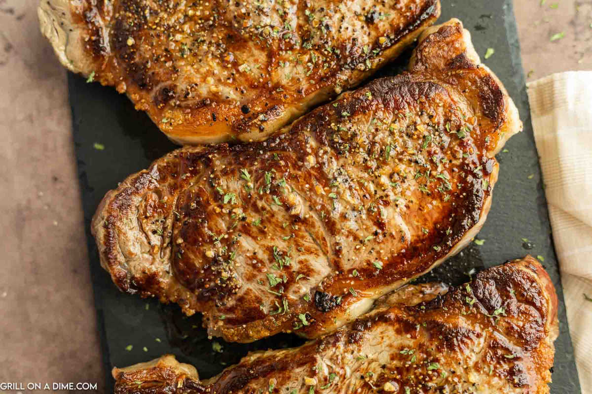 - Meat Thermometer – Make sure to use a meat thermometer to check for doneness. It is better to use a thermometer to check for desired temperature instead of slicing into the steaks.