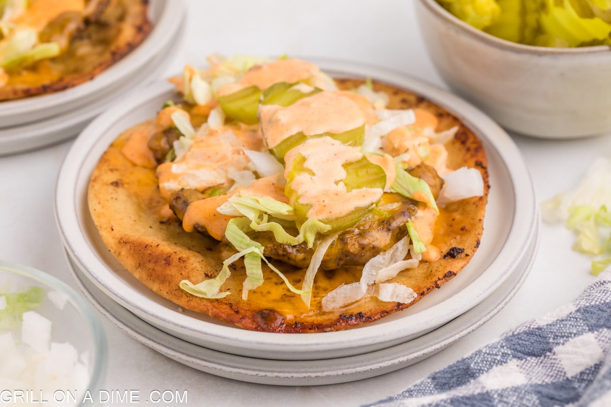 This big mac smash tacos recipe is a twist on two classic recipes. If you love making a classic burger on your Blackstone Griddle, then you need to make this recipe. This viral smash burger tacos recipe is my kids favorite weeknight meal.