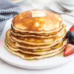 Then serve the pancakes warm topped with butter, syrup or any of your other favorite pancake toppings!